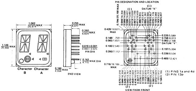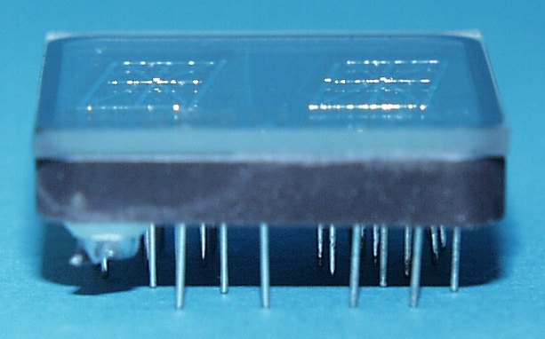 Two digit, 14-segment display with 2 deciamal points on the right side capable