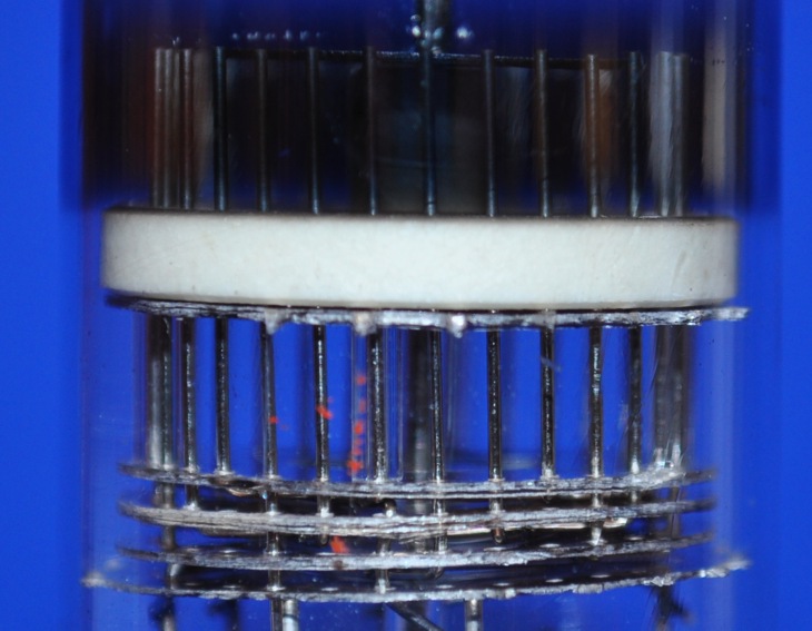 Of course, only one of the cathodes is glowing, but the shutter speed of the