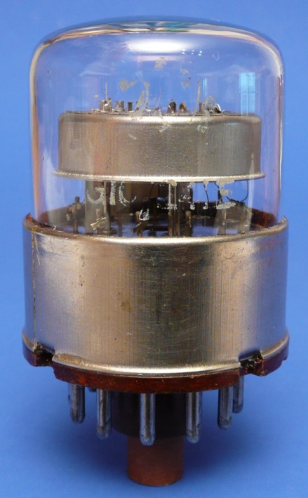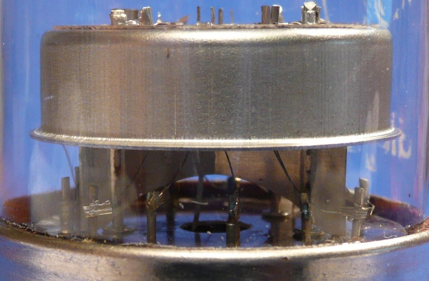 shell covering cathode pins inside tube. Shell has holes for viewing glow