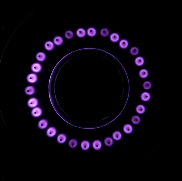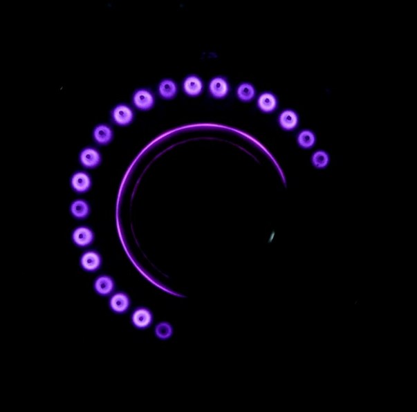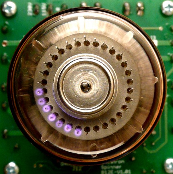 An animation of a spinning dekatron (neon filled, colour not